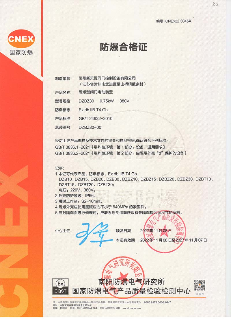 防爆Z10B Z10FB國家強制性產品認證CT4證書109.1